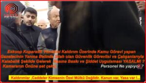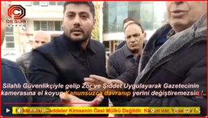 Kamu görevi yürüten bir gazetecinin etrafını Belinde Silahları olan Özel Güvenlik personeliyle sararak adeta bir suç örgütü edasıyla hareket eden şahıslar; şiddet, hakaret ve tehdit içerikli söylemlerle haber yapılmasını engellemeye çalıştı.