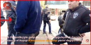 Hukuk tanımaz Kooparatif yönetim binasından çıkan grup, devletin tapulu yolu ve yaya kaldırımının kooperatifin özel mülkü olduğunu iddia ederek, Araştırmacı Gazeteci Gülmez’in çalışma alanını gasp ettiler.