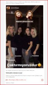 Ceren Kaya, ablası Dilek İmamoğlu‘nun da olduğu bir fotoğrafı “Deprem olmuş bize ne” notuyla paylaştı.