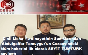 Çinli Lisha Yu cinayetinin sanıklarından Abdulgaffar Tamuygur hayatını kaybetti. Türkistan İslam Partisi savunucusu Tamuygur’un ölüm haberini sözde Doğu Türkistan ayrılıkçılarının elebaşı Seyit Tümtürk duyurdu.
