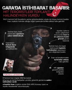 17 Temmuz’da, Sofi Nurettin’in ardından görevlendirilen sözde üst düzey terörist İzzettin İnan’ı, MİT’in saha ajanları, Gara’da toplantı halinde olduğu örgüt üyeleriyle birlikte etkisiz hale getirdi.
