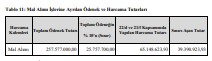 Tablo 11: Mal Alımı İşlerine Ayrılan Ödenek ve Harcama Tutarları