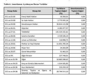 Tablo 6: Amortisman Ayrılmayan Duran Varlıklar