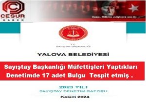 Yalova Belediyesinde Sayıştay Başkanlığı Müfettişlerinin 2023 yılı hesapları için 2024 yılında yaptığı denetimde 2023 Raporu Sayıştay Başkanlığının wep sayfasında yayınladı.