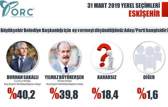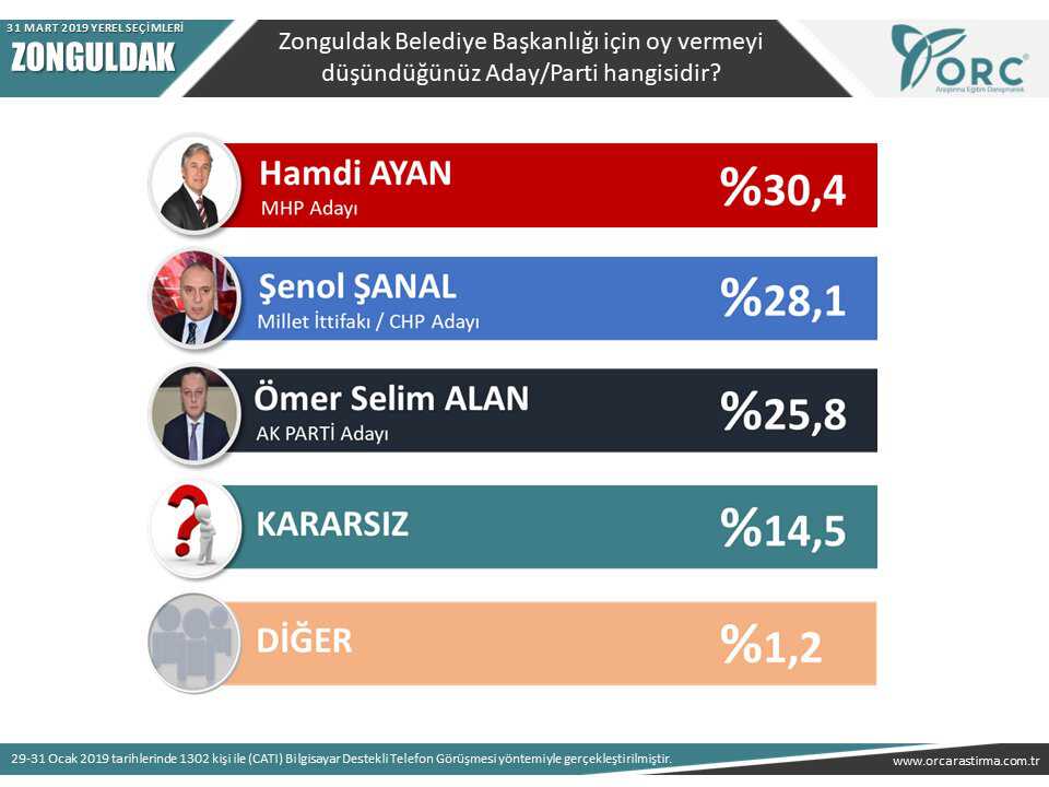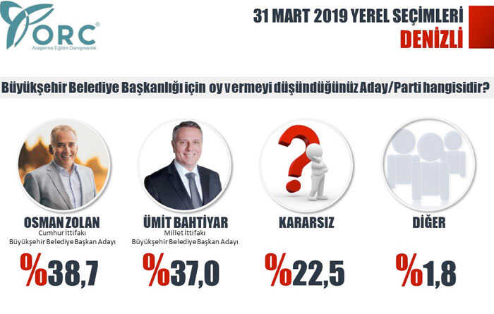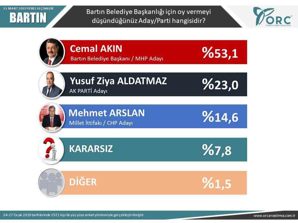 ORC araştırma şirketi, 31 Mart yerel seçimlerine ilişkin Ankara, Antalya, Isparta, Zonguldak, Bartın ve Çankırı’da yaptığı anketin sonuçlarını açıkladı. Sonuçlara göre kararsız seçmenlerin oranı dikkat çekici.
