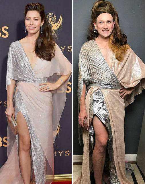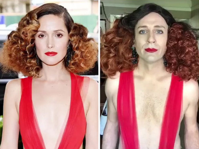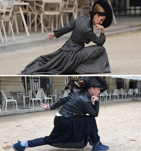 Ünlülerin fotoğraflarını taklit eden adam güldürdü
